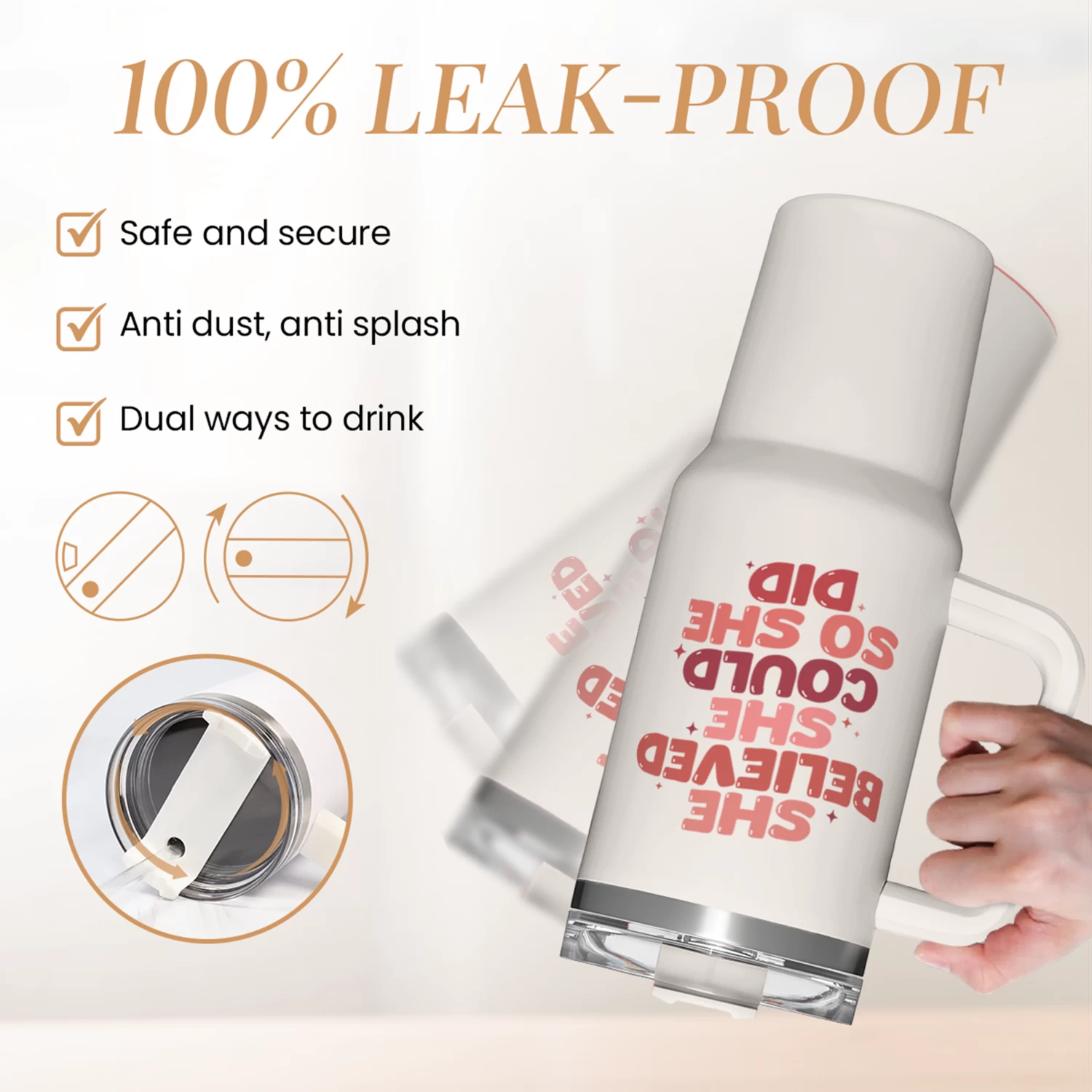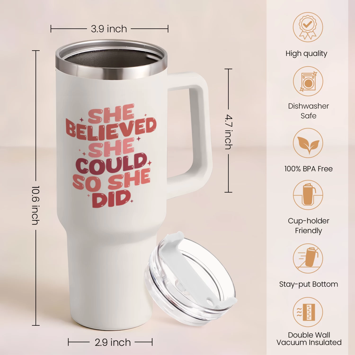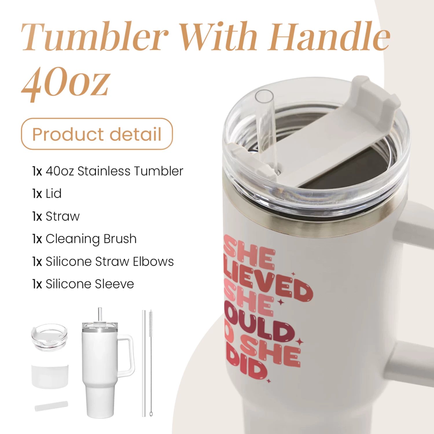 Are you looking a tumbler that is both practical and stylish to show off to your friends and loved ones? Well, look no further because we have what you need here. Introducing the 40oz tumbler with handle that is designed to elevate your drinking experience. The tumbler is crafted with meticulous attention to detail as it features a sleek and modern design. The 40oz capacity ensures you have ample space to quench your thirst throughout the day, whether you’re sipping on icy cold water or enjoying a piping hot beverage. With the inclusion of double-wall vacuum insulation, your drinks will stay refreshingly cold or heartwarmingly hot for quite some time. The stainless steel exterior also increase the tumbler’s longevity. The handle is smooth and comfortable to your grip, which adds an extra layer of convenience, allowing you to carry your tumbler with ease wherever you go. Whether you’re heading to the office, going on a camping trip, or hitting the gym, this 40oz tumbler is the perfect companion to keep you hydrated and satisfied. With a wide array of designs to choose from, finding a tumbler that perfectly matches your personal taste or that of your loved ones is a breeze. For optimal cleaning, we highly recommend hand washing the tumbler.