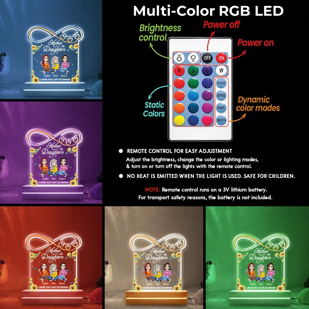 - Achieving a sleek and modern design through expertly executed curves and lines, this mom and daughter night light is a true work of art. Give the gift of our night light to encapsulate the heartfelt moments between mother and daughter, creating a keepsake to be cherished forever.