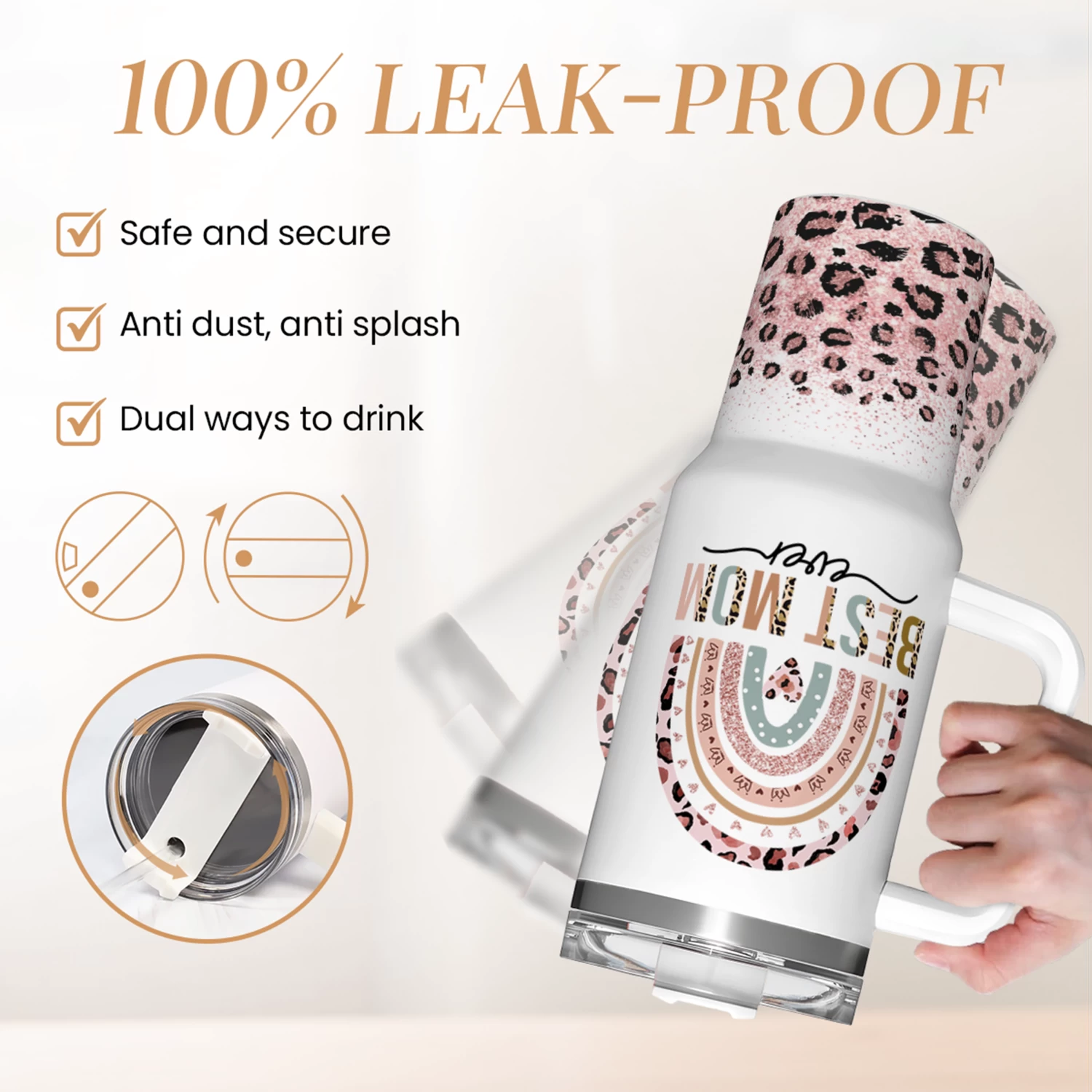 Are you looking a tumbler that is both practical and stylish to show off to your friends and loved ones? Well, look no further because we have what you need here. Introducing the 40oz tumbler with handle that is designed to elevate your drinking experience. The tumbler is crafted with meticulous attention to detail as it features a sleek and modern design. The 40oz capacity ensures you have ample space to quench your thirst throughout the day, whether you’re sipping on icy cold water or enjoying a piping hot beverage. With the inclusion of double-wall vacuum insulation, your drinks will stay refreshingly cold or heartwarmingly hot for quite some time. The stainless steel exterior also increase the tumbler’s longevity. The handle is smooth and comfortable to your grip, which adds an extra layer of convenience, allowing you to carry your tumbler with ease wherever you go. Whether you’re heading to the office, going on a camping trip, or hitting the gym, this 40oz tumbler is the perfect companion to keep you hydrated and satisfied. With a wide array of designs to choose from, finding a tumbler that perfectly matches your personal taste or that of your loved ones is a breeze. For optimal cleaning, we highly recommend hand washing the tumbler.