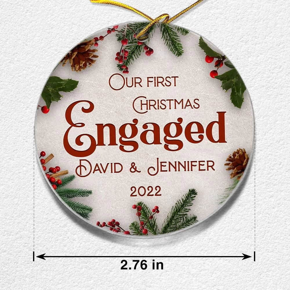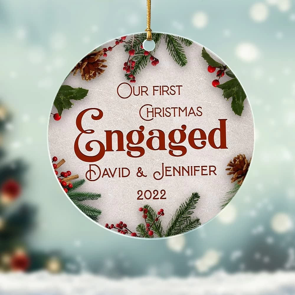 - Our personalized engagement Christmas ornament serves as a unique reminder of the start of your eternal journey together.