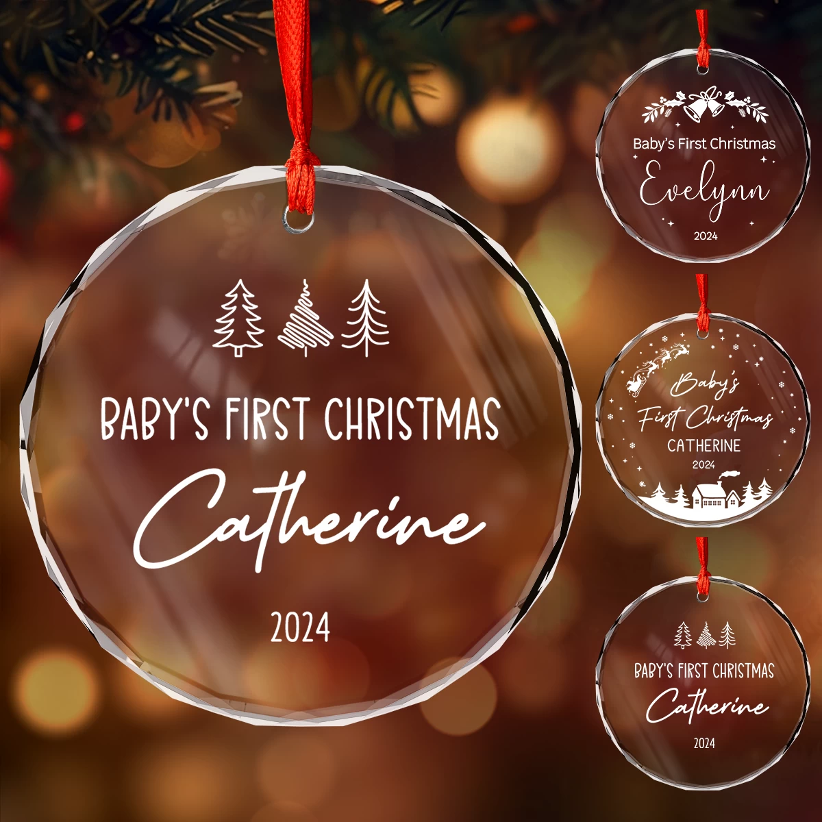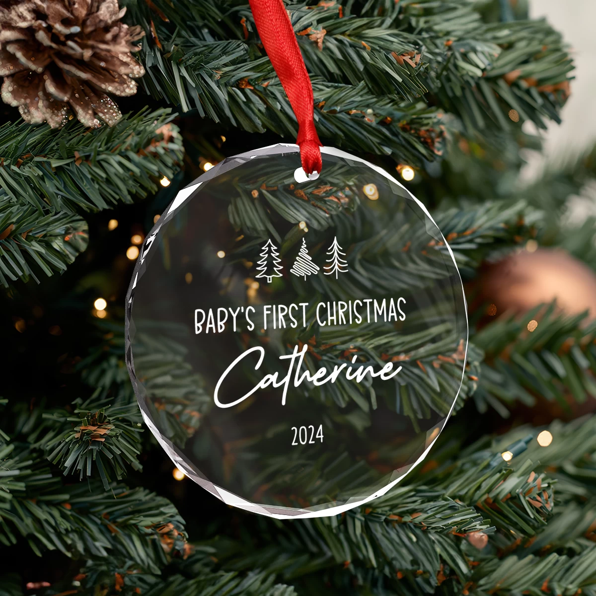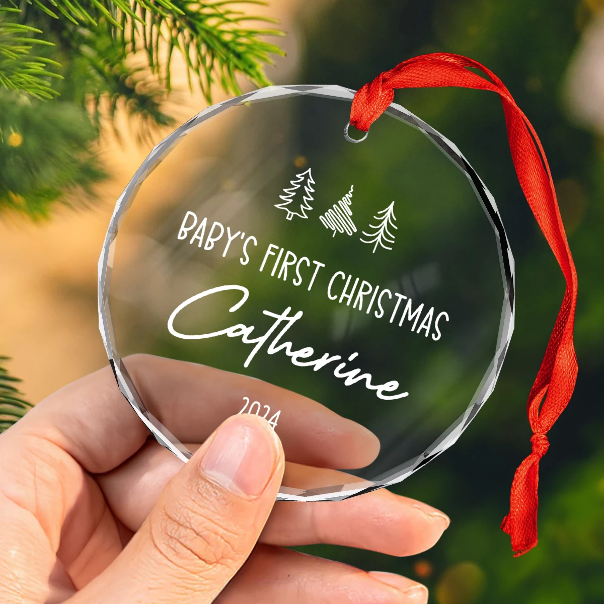 Are you looking for a lovely gift for your beloved ones this Christmas season? Look no further. Our delicate glass ornament is a charming addition to any holiday decor and makes a thoughtful present. Made from high-quality material with the transparent nature of crystals allows them to reflect light, creating a dazzling effect that adds a touch of luxury to any Christmas tree or holiday display. Whether hung on your Christmas tree, displayed on a mantelpiece, or gifted to loved ones, this unique piece captures the spirit of the season. Embrace the beauty of simplicity with our personalized glass Christmas ornament.