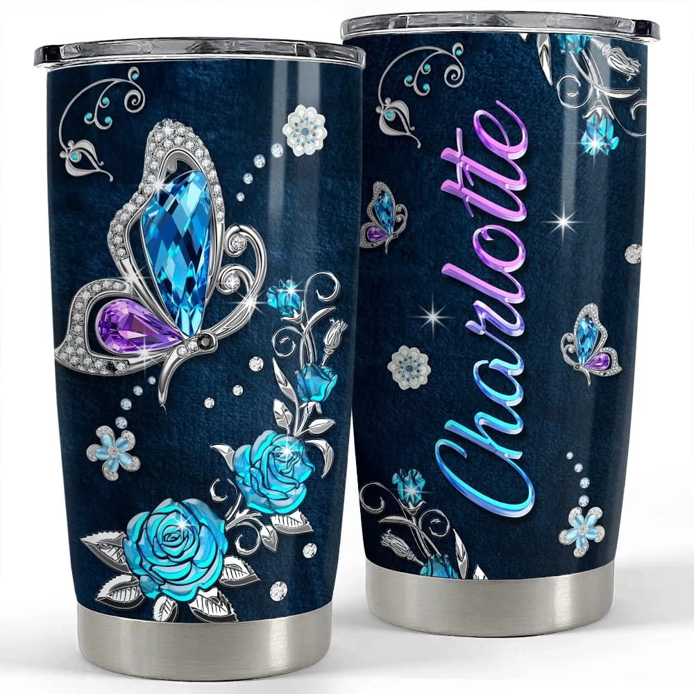 - Bring some aquatic charm to your hydration game with a customized butterfly glitter tumbler featuring a friendly dolphin or sea Butterfly design.