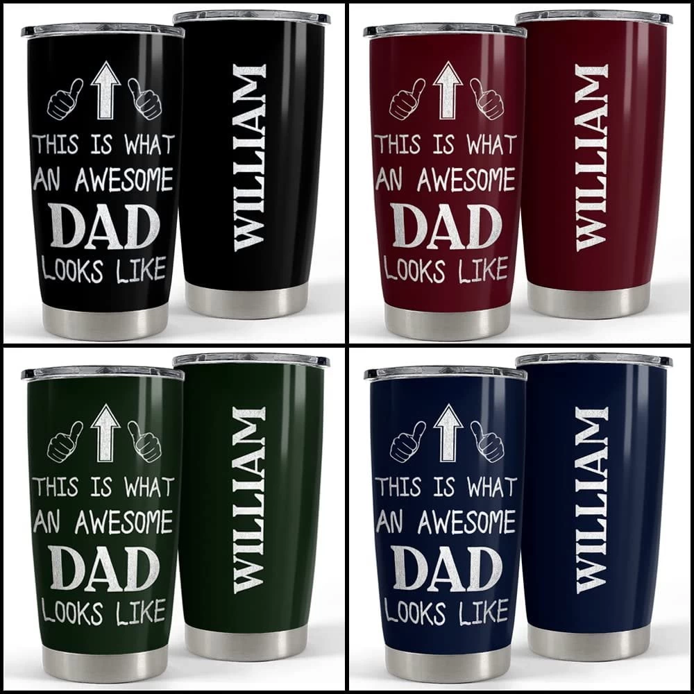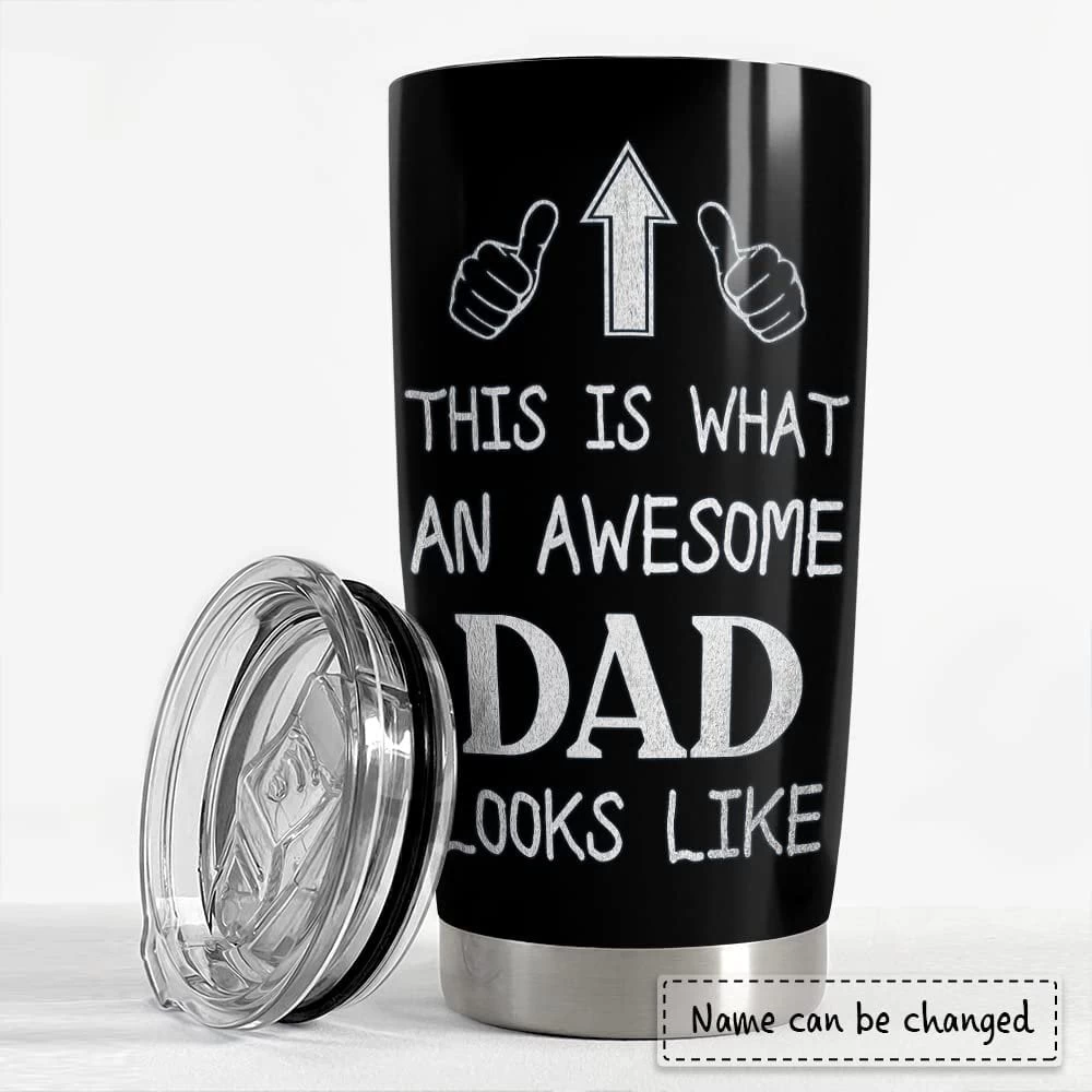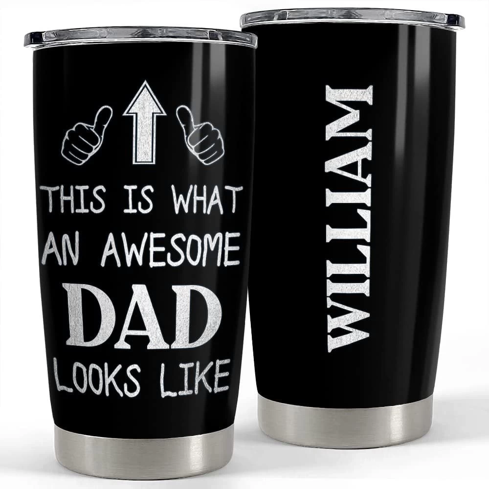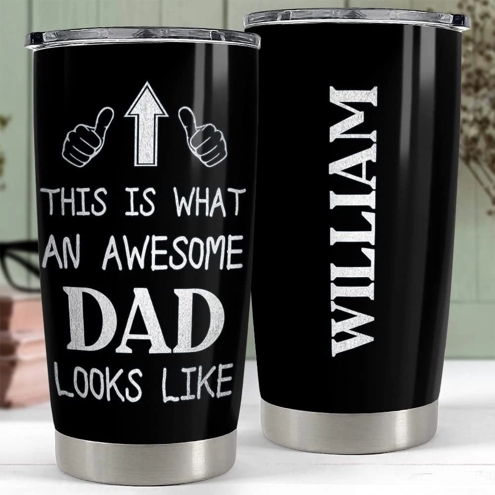 - Personalize the Tumbler with his name or a special message to make it even more special. This Tumbler is specifically designed for busy dads, featuring a spill-proof lid, a reusable stainless steel straw, and superior temperature retention for his favorite beverage.
