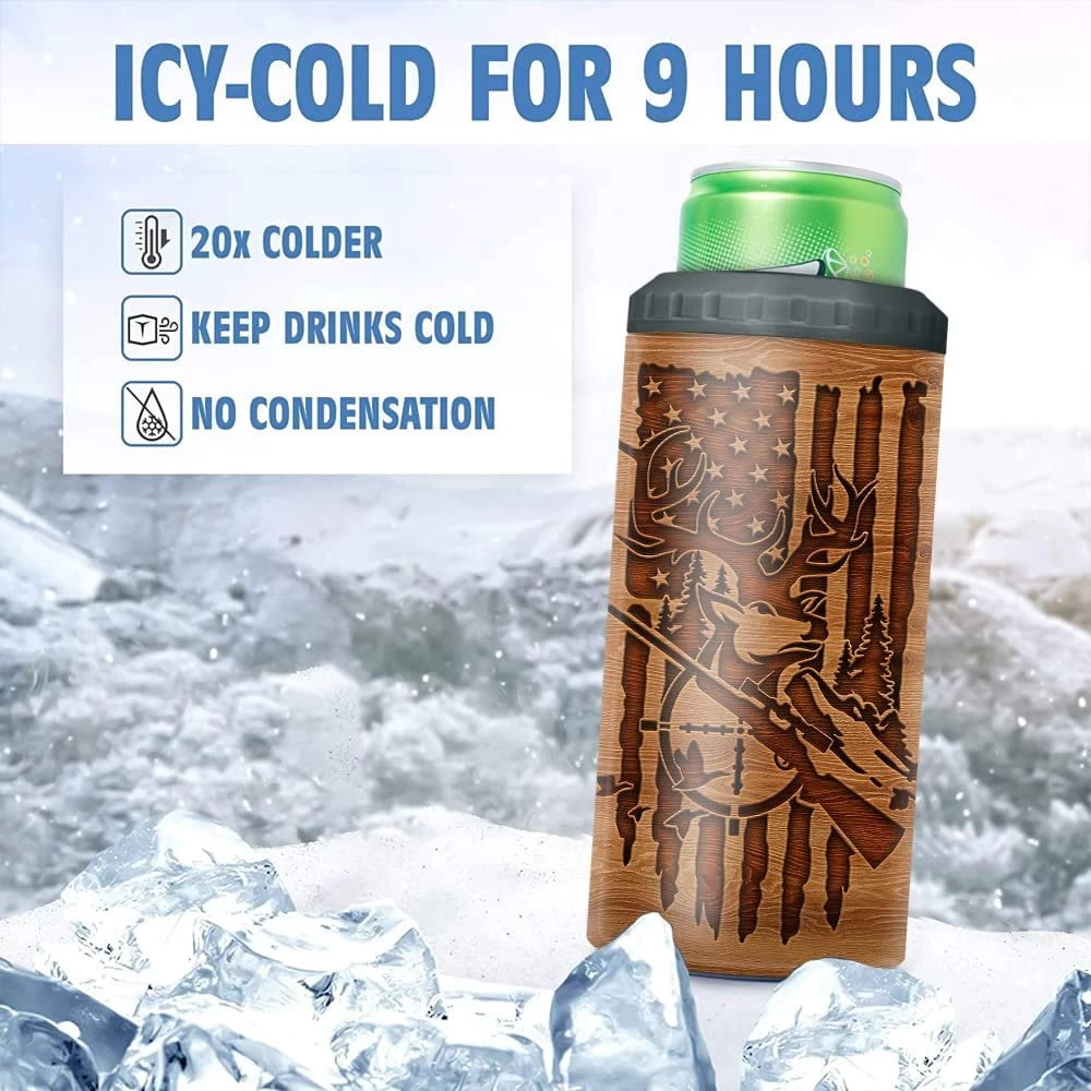 SANDJEST 4-IN-1 CAN COOLER: Our 4-in-1 skinny can cooler can hold any 12oz Can, Skinny Can, and 12oz Beer Bottle; and even works as a regular tumbler. Bring along your favorite drinks anywhere, but your drink’s still cold after hours.