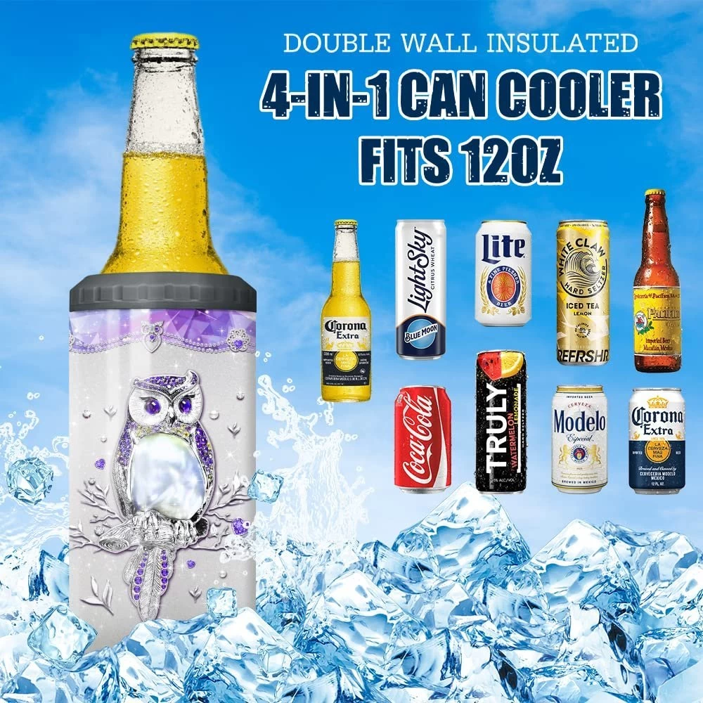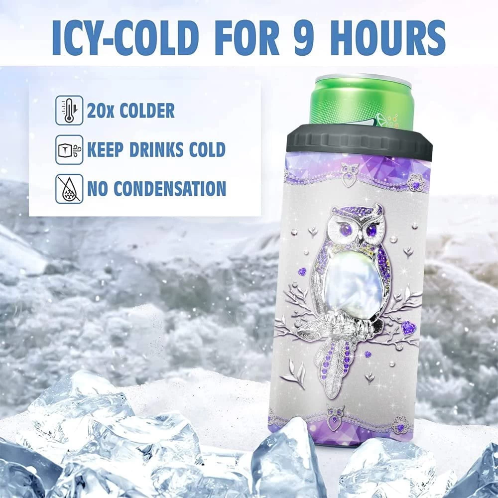 - Make a statement and show off your unique style with our owl-patterned can cooler – a great way to add some fun and personality to your outdoor activities.