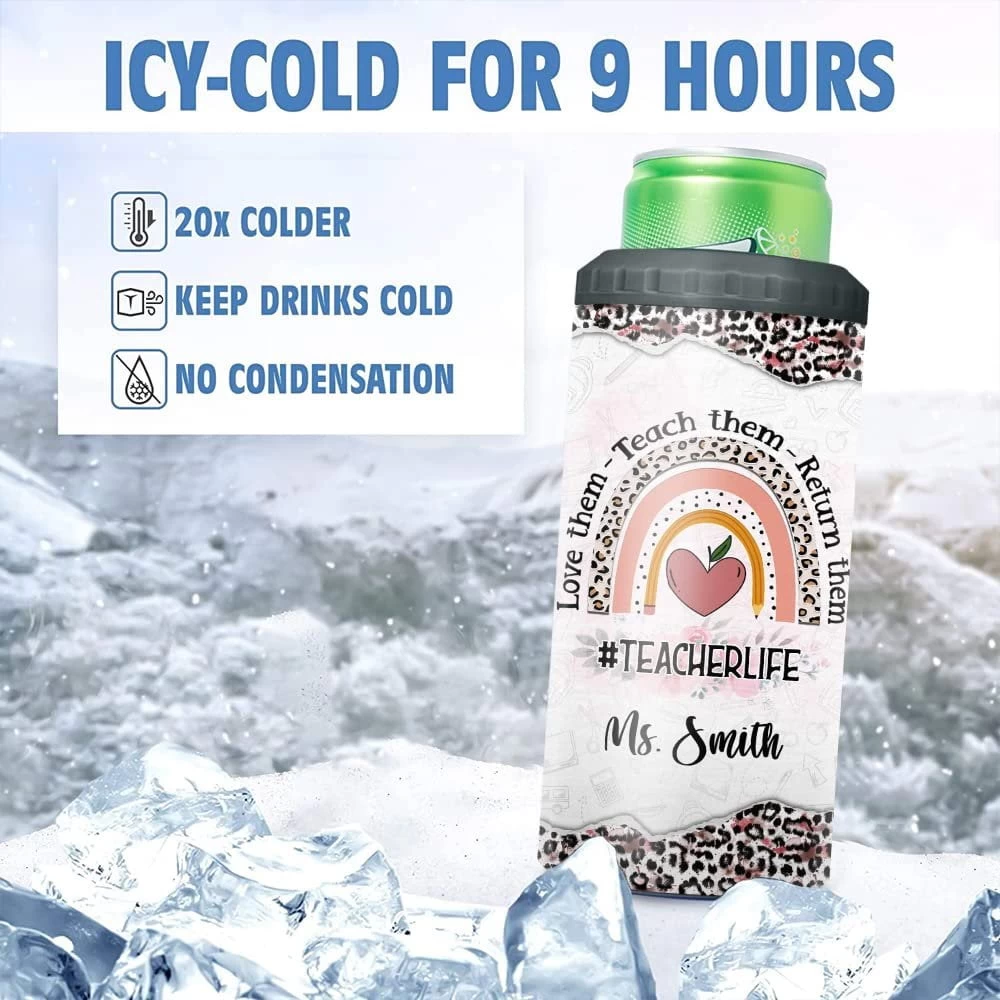 - Celebrate the diversity of educators with our teacher-patterned can cooler – a great way to show support for teachers of all backgrounds and specialties.