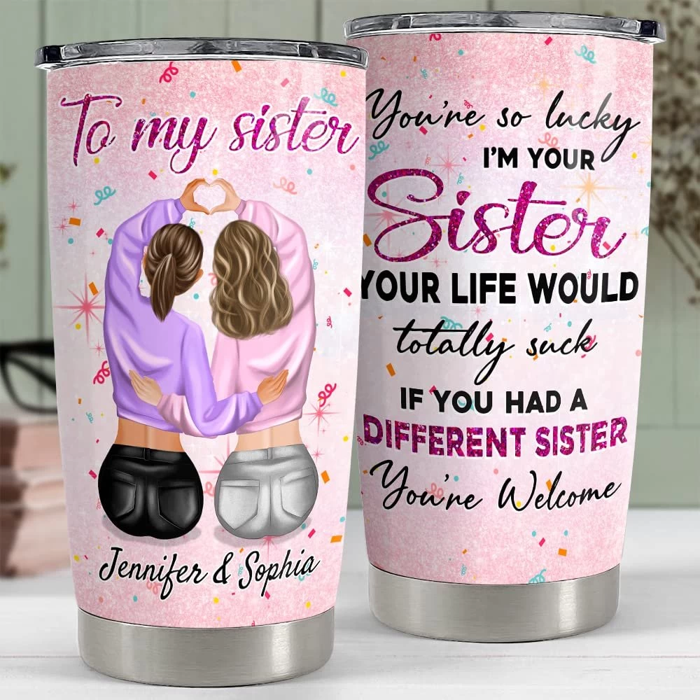 - Sandjest has many preferential policies for customers every holiday and anniversary. Surprise your sister or best friend with our personalized best friend tumbler and show your appreciation by ordering from our website today.