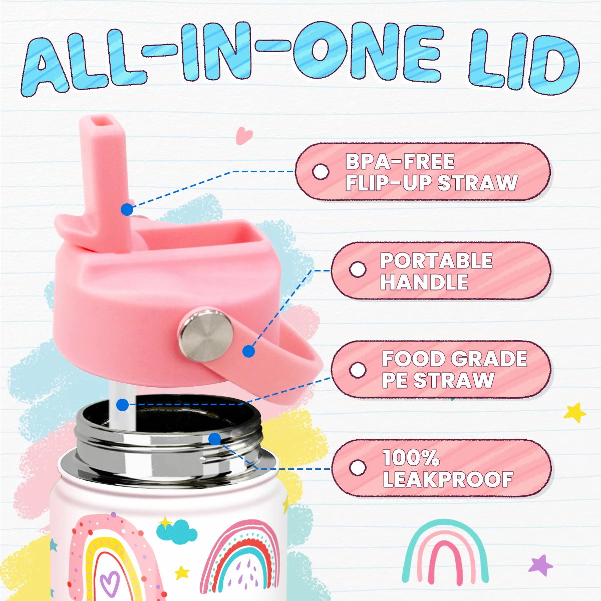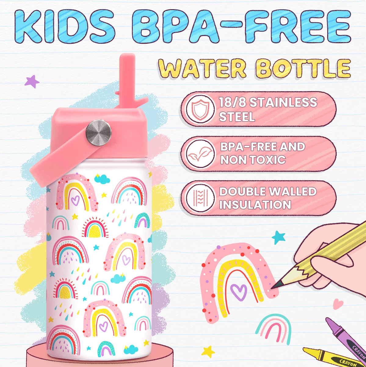 Be the first to review “Rainbow Water Bottle – Kids Water Bottle With Straw Lid – 12 Oz Insulated Stainless Steel Water Bottles For Toddlers Kid Girl – Travel Cup For School Sports” Cancel reply