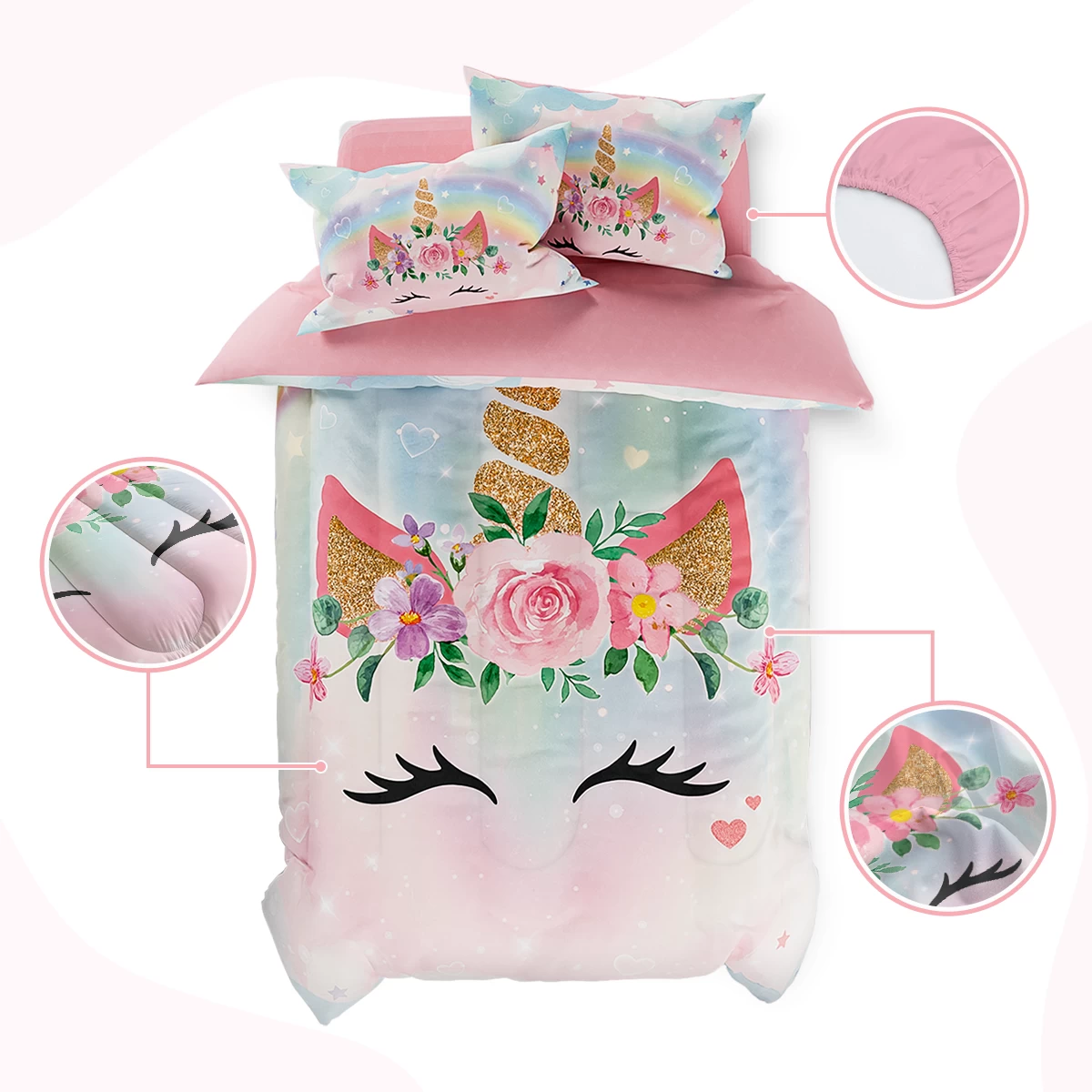 SKU: C2FUZ 9440866140467 Categories: Bedding Sets Twin, Kid Bedding Set Tag: Unicorn bedding twin sets beds comforter comforters girly girls teen tween kid pillowcase room decoration child microfiber